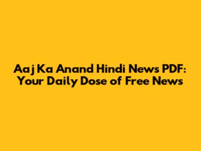 Aaj Ka Anand Hindi News PDF: Read Today's News Free