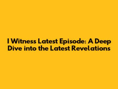 I Witness Latest Episode: A Deep Dive