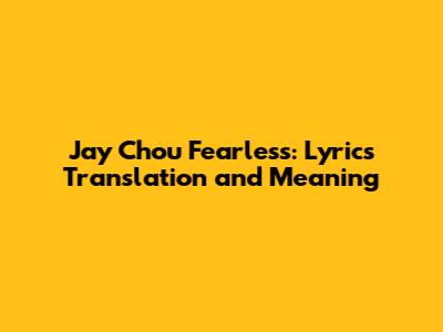 Jay Chou Fearless: Lyrics Translation And Meaning